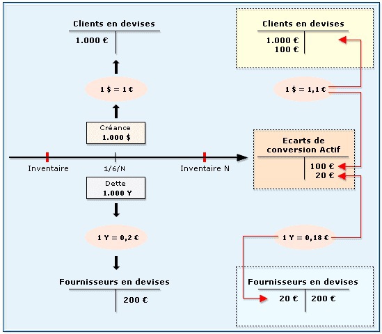 On peut reprendre le même exemple que précédemment mais en supposant une évolution inverse des cours de change au 31/12/ N.
