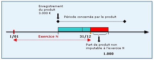 Supposons une entreprise qui possède des locaux dont elle loue à bail une partie à une autre entreprise. Le montant du loyer trimestriel payable d'avance est de 3.000 €. L'entreprise perçoit cette somme le 1/11/N pour la période allant du 1/11/N au 31/01/N+1.